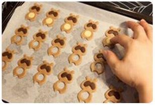 アーモンド等のトッピングを動物たちに持たせられるデザインです。顔等は焼き終わってからチョコペン等で描いてあげましょう。