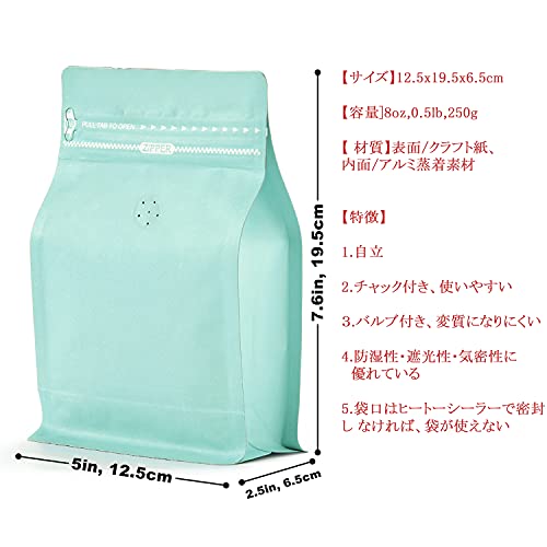 【サイズ】125X195X65MM ?227-250g/半ポンドのコーヒー豆が入る【材質】表面/クラフト紙 内面/アルミ蒸着素材 【注意】袋口はヒートーシーラーで密封しなければ、袋が使えない