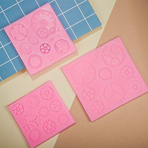 SUNNYCLUE 3個スチームパンクギア形状シリコン金型正方形時計時計ホイール歯車歯車フォンダン金型シリコーン