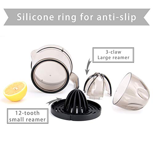 Citrus Juicer, Sunhanny Orange Lemon Manual Hand Squeezer, Anti-Slip Lid Rotation Reamer Lime Press, 17-Ounce Capacity, Transparent Black