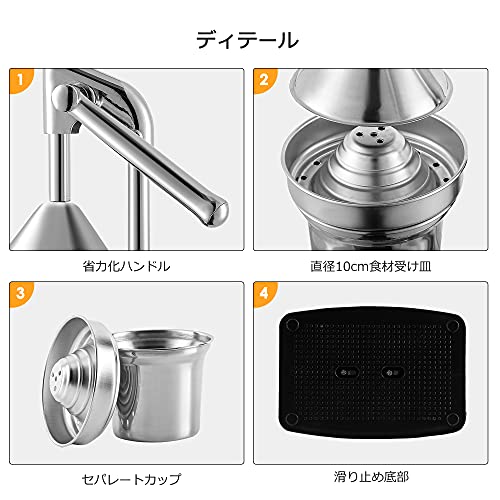 | 商品名 | Hanchen 手動ジューサー フルーツしぼり 1.85kg軽量 柑橘類 ハンドジューサー カップ付 フレッシュジュース 果汁 |