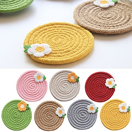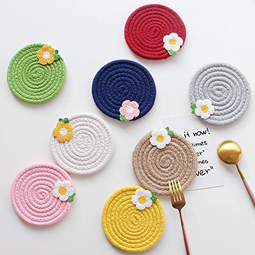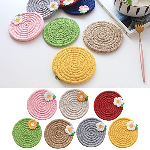 【おしゃれのかわいい花柄】丸型断熱パッド、その上にかわいい小さな花の装飾があります。北欧風、それは実用的で美しい、ホームキッチンのダイニングテーブルの装飾としても使