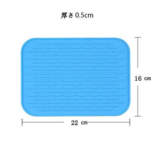 【乾燥用マットサイズ】 22x16cm。素材:安全シリカゲル。食器を乾燥用、耐熱性があるので、鍋やフライパンなどの調理器具も置けます。