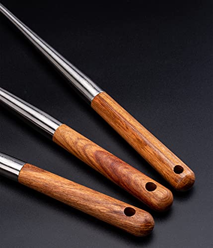 【サイズ情報】長さ17インチ 中華シャベル&レードル 丈夫なステンレススチール製ボディ1個から手作業で鍛造、花の梨の木製ハンドルで熱から保護、熱くならないハンド。正味重量: 370g。