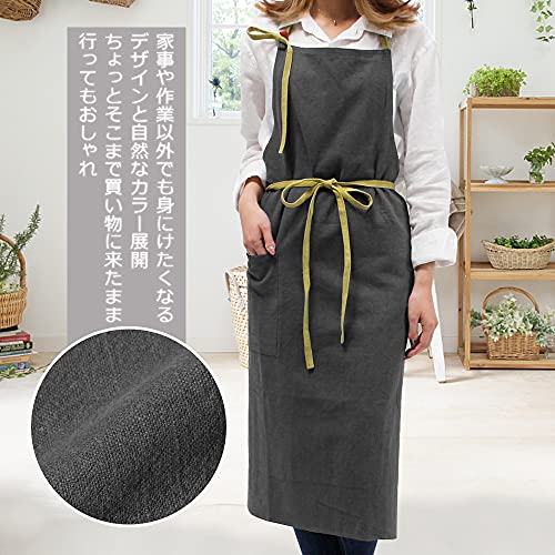 Anyasun エプロン 首掛け リネン カフェ風 シンプル おしゃれ ナチュラル 北欧 無地 おしりが隠れる ポケット付