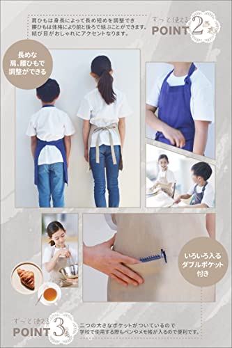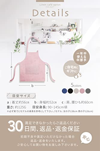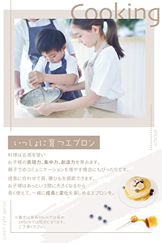 【一着で長く使えるリネンエプロン】身長90~145cm頃まで対応。成長に合わせてひもで身幅調整できるキッズ 子供用 リネン エプロンです。女の子 男の子 両方にユニセックスでお使いいただけます。保育園、幼稚園、小学生まで幅広くご使用できます。