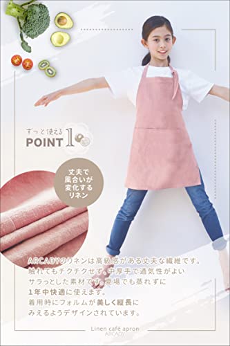 エプロン リネン 子供 キッズ 女の子 男の子 兼用 (ARCADY) 90-145cm対応 長く使える (エクルベージュ)
