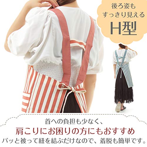 軽くて乾きやすく、シワになりにくい、北欧風 H型 エプロンです。シンプルで可愛いシルエットのエプロンは、ドット柄とストライプ柄の2種類。色は、レッド、グリーン、ブルーの3色から選べます。明るい柄なので、毎日の家事が楽しくできます。また、軽い上に、後ろ姿もすっきり見えるH型だから、首への負担も少なく、肩こりにお困りの方にもおすすめです。