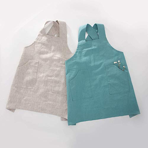 リネンエプロン 人気アイテム幅広いカラー 着脱簡単 (W66×L55cm, キッズ用オミアオ)