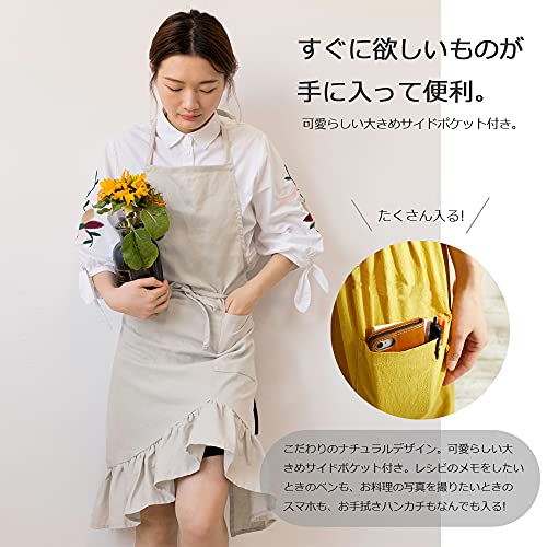 【便利なポケット】エプロンにはポケットがあり、小物を入れることができます。