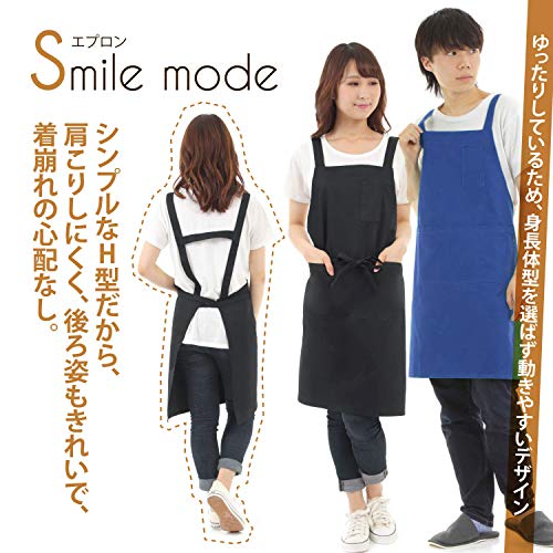 smile mode H型 エプロン おしゃれ スタイリッシュ 無地 ポケット付 男女兼用 シンプルデザイン 家庭用 カフェ用