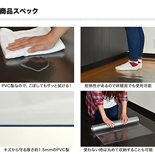 お手入れが簡単PVCキッチンマット:透明 キッチンマット 新世代のアップグレードされたPVC素材でできており、透明性が高く、味がなく、収縮しません,普段のお手入れは簡単な拭き取りで十分です.帯電防止機能も付き、埃がつきにくく掃除しやすいです。透明で床が若干透けて見えるので、圧迫感がなくお部屋の雰囲気を損ないません。キッチン違和感なくマッチします。また、耐熱性があるので床暖房の上でも使用OK.