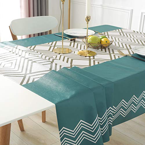 DARUITEテーブルクロス 撥水 北欧 厚手PVC素材 おしゃれ (137x185cm,幾何柄)