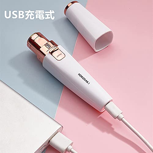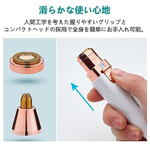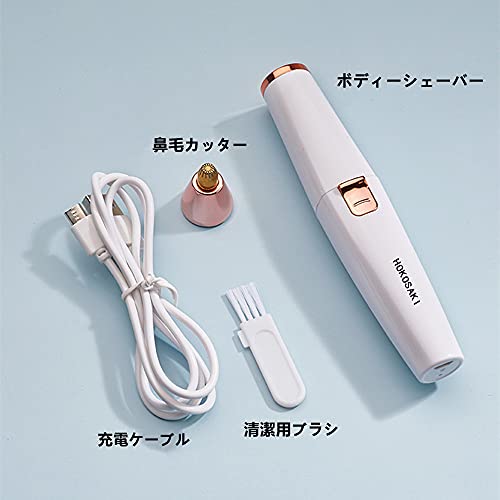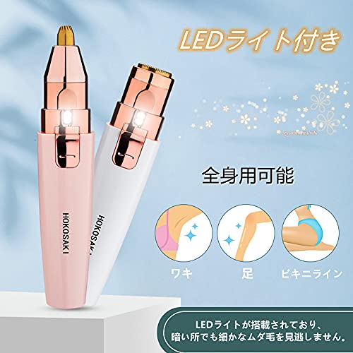 HOKOSAKI シェーバー 女性 レディースシェーバー 鼻毛カッター LEDライト付き USB充電式 1台2役 多機能 無痛 低騒