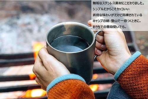 無垢なステンレス素材にこだわりました。シンプルだからこそカッコいい、武骨な味わいがあるのに洗練されている、そんなステンレスマグです。 おうちでの普段使いはもちろん、キャンプの朝、登山で一息つくときに、本格的なコーヒーをお楽しみいただけます。 きっとお気に入りのギア(道具)の仲間入りする製品です♪