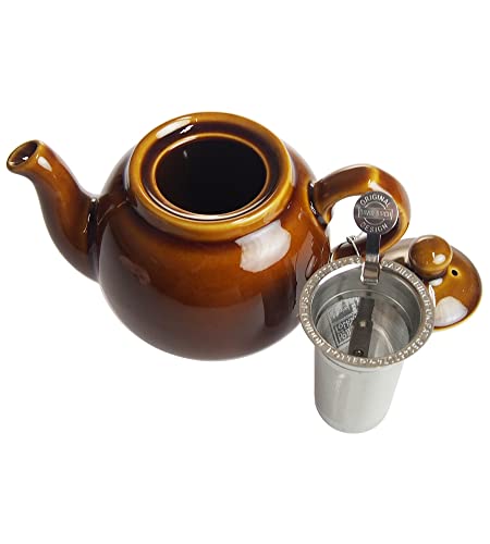 【紅茶の本場イギリスの家庭で長く愛されているティーポット】 ころんとした丸いフォルムで可愛らしくナチュラルなデザインが魅力。機能性の高さが高く、ポットの中には、ステンレス製の目の細かいティーストレーナーが付いています。