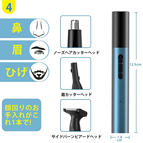 【一台3役の多機能電動鼻毛カッター】 本体のヘッドを簡単に交換することにより、鼻毛トリマー、眉毛トリマー、ヒゲシェーバーとしてご利用いただけます。ヘッドはひねると外れる仕様で簡単に交換できます。したがっていつでもトリミングできます。鼻毛カッターは高速回転モーターとダブルブレードが内蔵された人間工学に基づいた立体設計。安全性が高く、無駄毛を素早くカットでき、鼻腔にもびったりとフィットし、奥まできれいにカットできます。