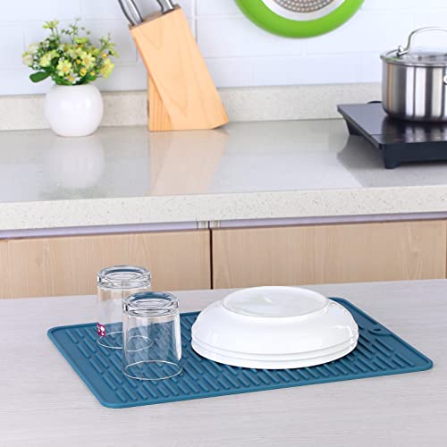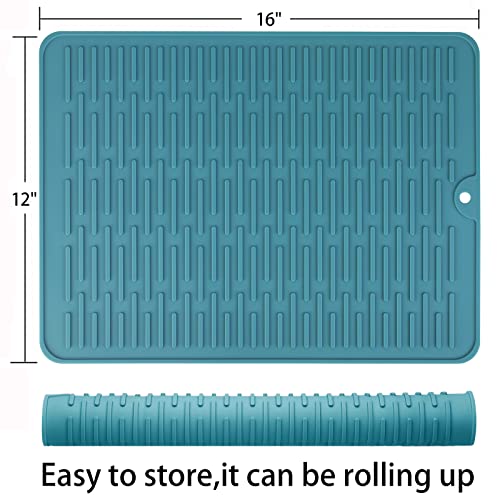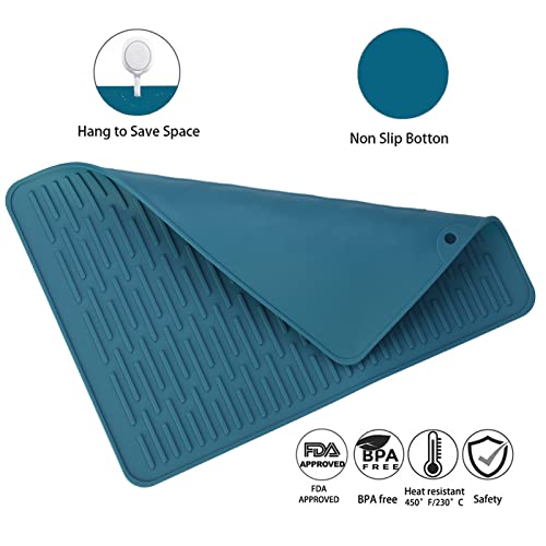 水切りマット キッチン 食器 乾燥用マット 大判シリコン 速乾 丸めて収納 断熱マット 滑り止 (ブルー)