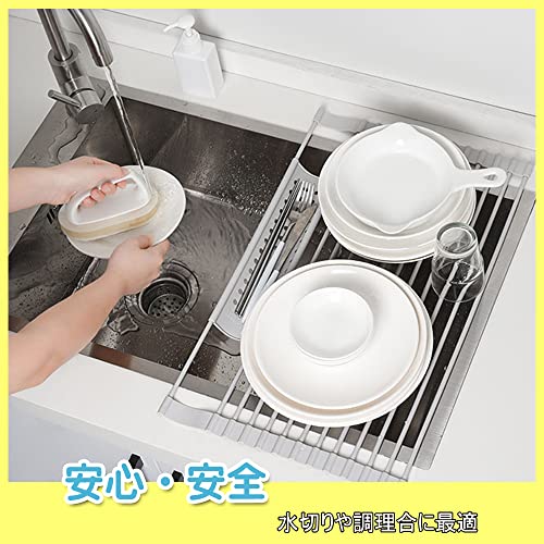 HomLead 水切りラック 折りたたみ シンク上 ステンレス 抗菌 耐熱 錆びない 滑り止め 省スペース 皿置き場 巻き