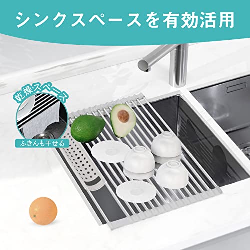 コンパクト収納:折り畳み式の水切りラックです。洗い物のときなど使わないときは、ぐるぐる丸めてコンパクトになるので邪魔になりません。場所を取らないから、使ったら片付けたい人にぴったりサイズです。