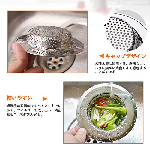 【適用場合】シンクストレーナーはシンク、キッチン流し台、風呂場、浴槽、排水皿、バスルーム、シンク洗濯場、台所などの排水口に対応します。既存の排水口ゴミ受けと置き換えるだけで、快適な食生活と健康をサポートしてくれます。