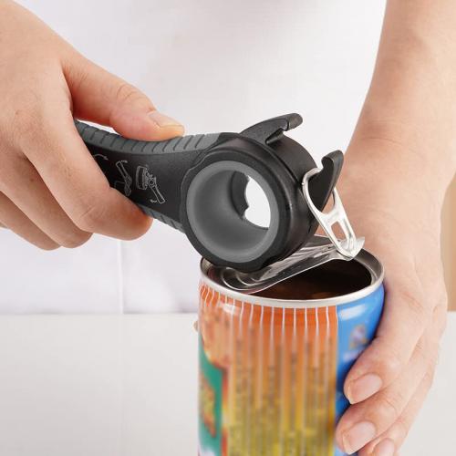 【多機能栓抜】プルトップ開け、ペットボトルの蓋開け、ハムなどのフィルムはがしや、袋のカットなど1台6役の万能オープナーです。