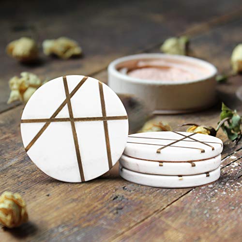 ? マーブルコースター: ホワイトのマーブルロックコースターにゴールドのラインデザイン。 それぞれに丸い形と模様があります。 母なる自然は、それぞれのコースターを独自の習慣、サイズ、厚さで独特にします。 どんな表面も清潔に保つのがっちりした作りで、これらのデザイナーコースターはコーヒー休憩に価値ある感覚をもたらします。 サイズ (長さ×幅×高さ)約4.1×4.1×2.15インチ。 パッケージにはコースター4枚が含まれます。
