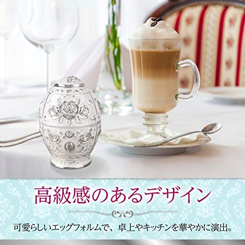 テーブルの上を彩る華やかなデザインの爪楊枝入れ:可愛らしいシルバーカラーのエッグフォルムデザインです。アンティーク調デザインのつまようじ入れケースがキッチンのインテリア空間を彩ります。