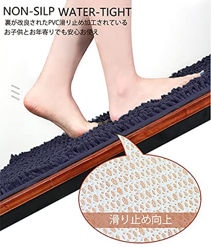 【滑り止め仕様】バスマットの裏面に滑り止めPVC素材を使用して、防滑性や耐久性は抜群、足を載せた途端に滑って転