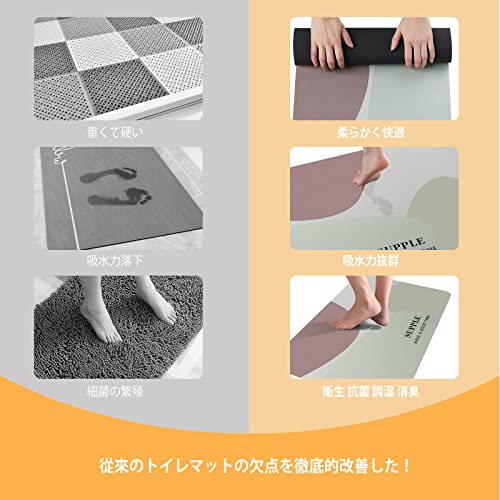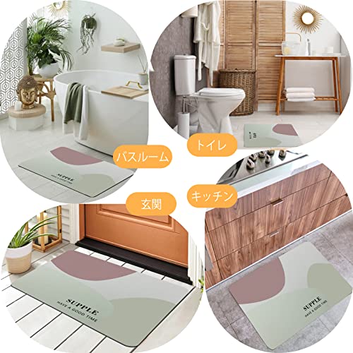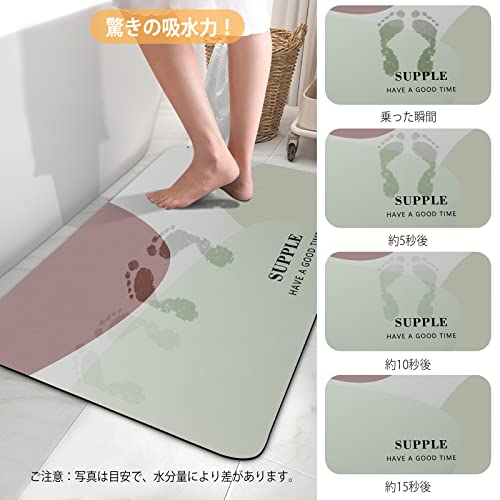 ?【最新の柔らかいマット】従来の硬いバスマットと違って、進化したソフトのバスマットは冷たくない、割れない、柔らかくてスポンジを踏むような感覚、踏み心地がいい。吸水性の高い自然素材のでつくられたバスマットは、調湿機能で水分を手早く吸い込み、外部に放出し、すぐに乾くからいつも清潔に保つ効能があります。ソフトタイプであるため割れる心配がありません。サイズ:60cm×40cm 重量:約518g