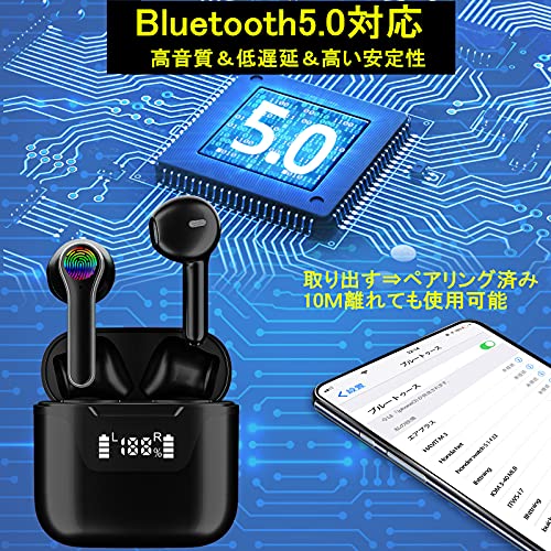 【ノイズキャンセリング技術搭載&LED残量表示】新のノイズキャンセリング技術を採用しており、環境音と声を識別して、雑音や周囲のノイズを効果的にカットして、クリアな音声を提供して、快適な通話を実現します。電車やバスなどで雑音が多い場所でもクリアな通話を楽しむことができます。また、バッテリー残量をLEDスクリーンにて表示されますので、暗い環境でも充電ケースのバッテリー残量が一目で確認できますので、電池不足のご心配が不要です。