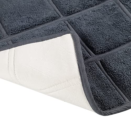 素材:バスマットは100%コットン製で、中層にPUフォーム(ポリウレタン)をはさんだ仕様となっています。テリー素材で、幅23.6インチ(60 cm)長さ15.7インチ(40 cm)のバスマットです。