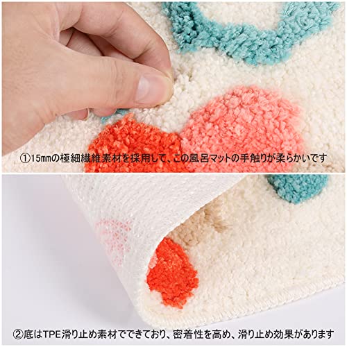 「柔らかく素材&エッジング」:15mmの極細繊維素材を採用して、この風呂マットの手触りが柔らかく、洗濯にも耐え、耐久性に優れています。超微細繊維、完全な皮膚接触、環境保護、安全性、ホルムアルデヒドなし、特有の臭いなし、防汚です。可愛い外観、ふわふわ、着心地が良く、や