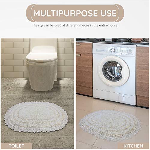 スタイリッシュなかぎ針編みのバスラグ:綿100%バスラグメジャーオーバル34 x 21インチ(53x86 cm)は、浴槽、シャワー、トイレ、シンク、洗面台の横に座って、快適で暖かく、乾燥した場所に立つように設計されています