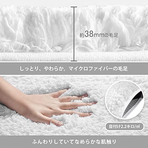 【吸水性・速乾性抜群】吸水性・速乾性に優れたマイクロファイバーを採用していて、繊維は一本で数吸水穴があり、より効率的に大容量の吸水が可能です。濃密な絨毛と約40センチ厚さで目付け2.2キロ/m2で、お風呂上がりの水分をすぐに吸い取り、優しい触感で足の裏も癒されます。速乾性にすぐれているので、何人かお風呂に入った後でもサラサラの使い心地で、ふんわりの感触をキープし、最後の人までぺたぺたならなく、気持ちよくお使いいただけます。
