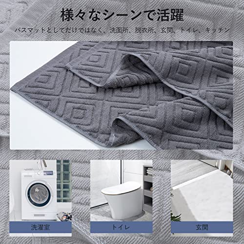 【手入れ簡単&快速乾燥】100%コットン採用の為、バスマットが快速で乾燥でき、長く持ちます。バスマットは40°C以下で、他衣服と一緒に楽に洗濯でき、洗濯ネットのご利用でバスマットを守れます。