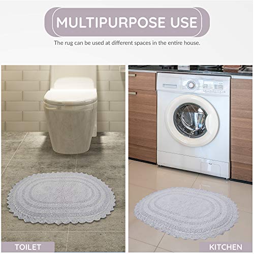 ライラックかぎ針編みバスマットコットンオーバルシェイプ24x17インチバスラグキッチンリビングルーム柔ら