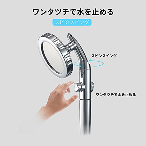 ?【水量調節・手元一押止水】スイッチを押すだけでワンキーストップが実現します。調節可能なシャワーヘッドは、水量を小さいものから大きいものに増やすことができます。親指でフローコントロールボタンを押すだけで、お手入れが簡単なハイパワー