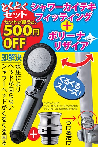 マイクロナノバブルシャワーヘッド ボリーナとシャワーカイテキフィッティングのお得なセット販売です。