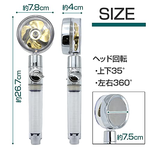 | 商品名 | シャワーヘッド 360°回転 ファン内蔵 増圧仕様 極細水流 手元止水機能 簡単取り付け フィルター付属 |