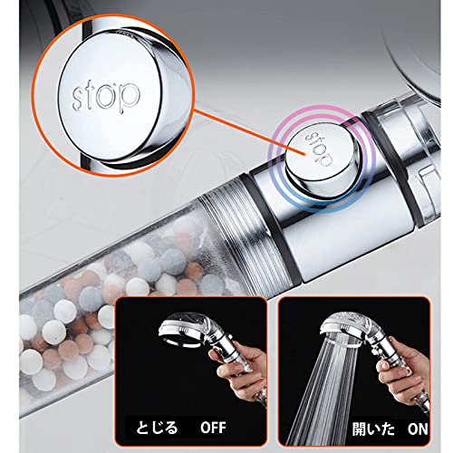 【ろ過システム90%】:節水シャワーヘッド、硬水をより柔らかくすることができる、アップグレードされた3層のミネラルストーンろ過を採用しています。ミネラルストーンは、シャワー水中の塩素とフッ化物、毒素、重金属、バクテリア、さび、臭いの90%以上をろ過し、水の浄化を強化し、水のpHバランスを維持するのに役立ちます。