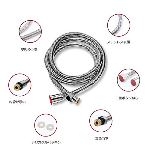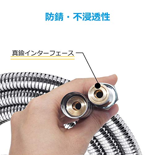 ステンレス製高密度のホース:シャワーホース全体に高密度のステンレスで細工され、耐熱性に優れ、ヤケドする心配なし、無臭、使い心地が良く、最適なシャワー体験をもたらせます。