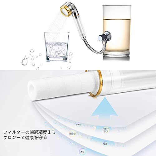 ?「塩素除去シャワーヘッド」:は1ミクロンのろ過精度で99%の脱塩素効果を実現します。75mmのフィルタ。取っ手の部分は透明で、フィルターの使用状況が確認しやすく、フィルターの掃除と交換も容易で、ご家族の健康を守ります。(使用状況によってフィルターを交換してください。1~3ヶ月がおすすめです。)