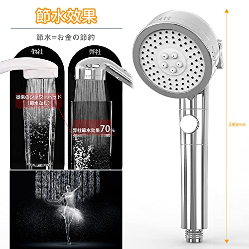 BLUE POWER シャワーヘッド シャワー 3段階モード ストップボタン付き 低水圧増圧 - 節水 浄水 水漏れ防止 取り付