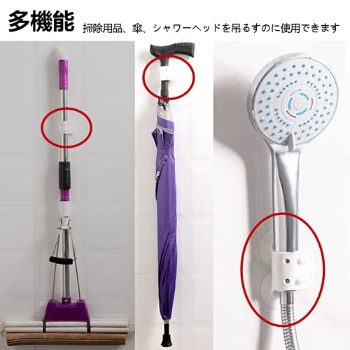 【多機能で】シャワーヘッド、モップ、ほうき、傘などの掃除用品を吊るして保管できます。