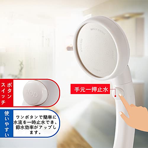 【ワンボタンで手元止水・極細水流】上質なABS素材を利用し、シャワーホールの直径は0.3ミリの細孔です。水流は細密だが幅広くて、まるでシルクのような感じが得られて、使用後肌の水分量が以上アップ!