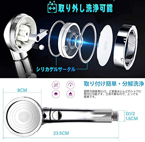 | 商品名 | シャワーヘッド 3段階モード調節 増圧 ストップボタン 85%節水 低水圧対応 360°角度回転 シャワー 国際汎用基 |