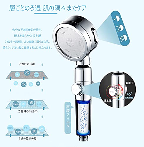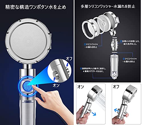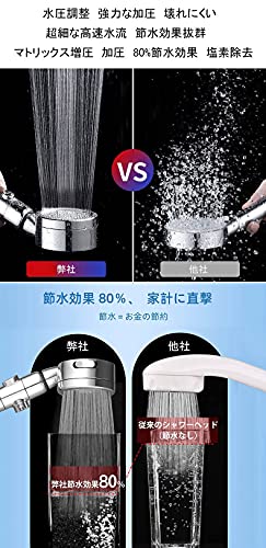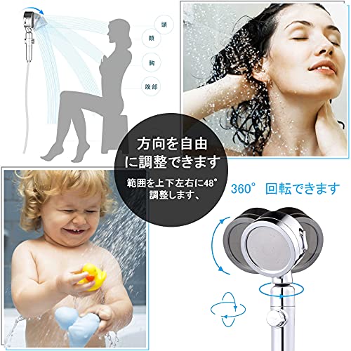 「2021最新人気版?業界新登場」シャワーヘッド 節水 塩素除去80% 止水ボタン 高水圧 360°角度回転 取り付け簡
