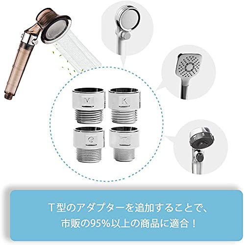 【使用条件】ご使用中のシャワーホースとお使いのシャワーヘッドが合わない際には、付属の4つのアダプターのうちの一つをお使いください。