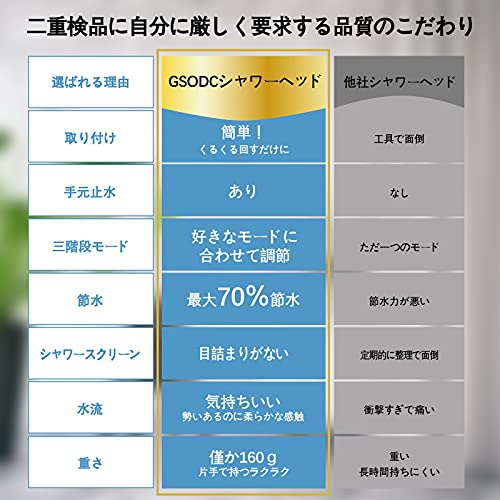 GSODC シャワーヘッド 節水シャワーヘッド 高水圧 しゃわーへっど 増圧 水圧 強い キモチイイ水流 角度自由調